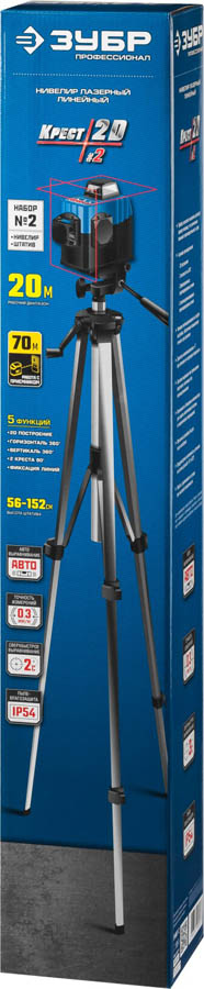 ЗУБР линейный лазерный нивелир со штативом в чехле КРЕСТ 2D 2 34907-2 Профессионал