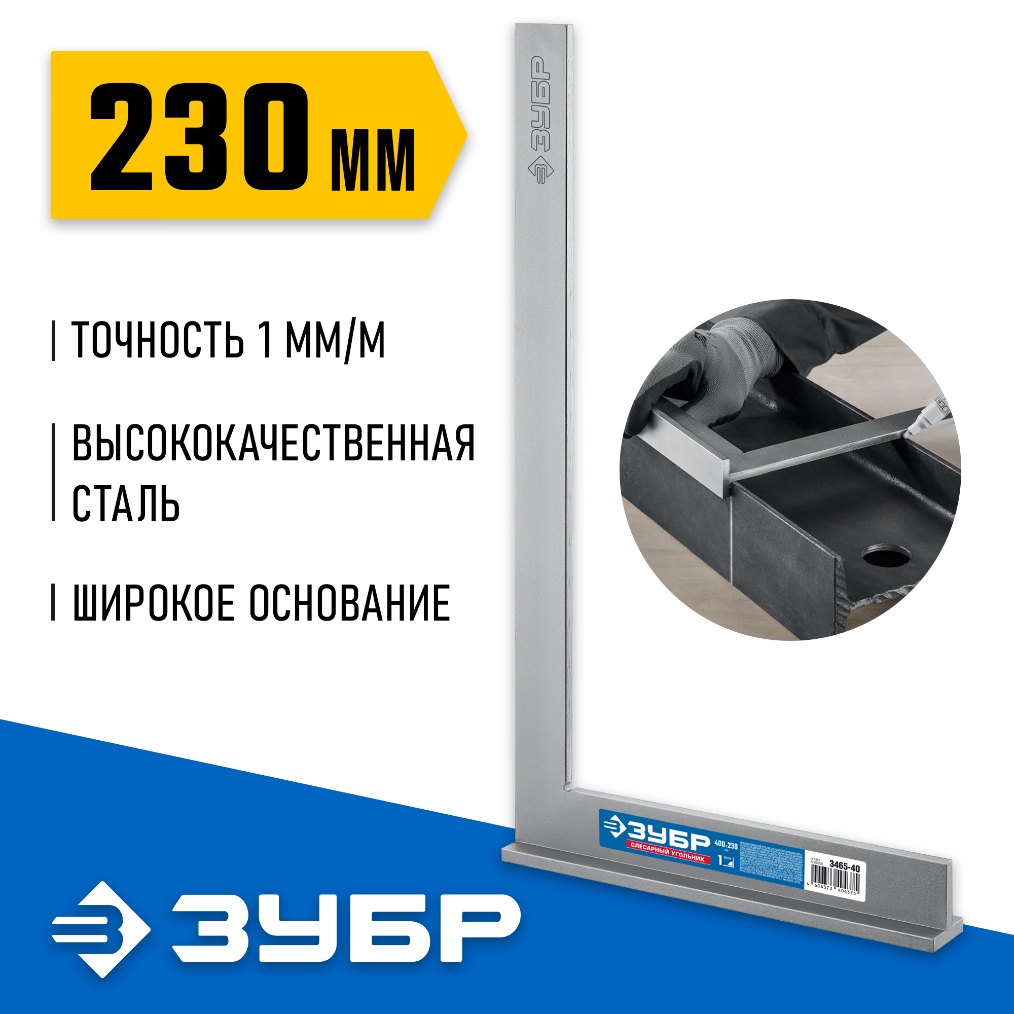 Угольник Зубр 3465-40, предназначен для контроля перпендикулярности конструкций в машиностроительных, металлообрабатывающих и деревообрабатывающих мастерских, при столярных, плотницких и прочих точных работах. Все поверхности угольника прошли многоступенчатую закалку.