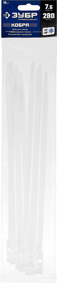 ЗУБР 280х7.6, 10 шт., хомуты нейлоновые белые, с плоским замком КОБРА 30930-76-280 Профессионал