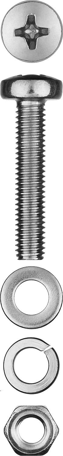 ЗУБР M5 x 30 мм, 12 шт., винт (DIN7985), гайка (DIN934), шайба (DIN125), шайба (DIN127), комплект крепежа 303476-05-030