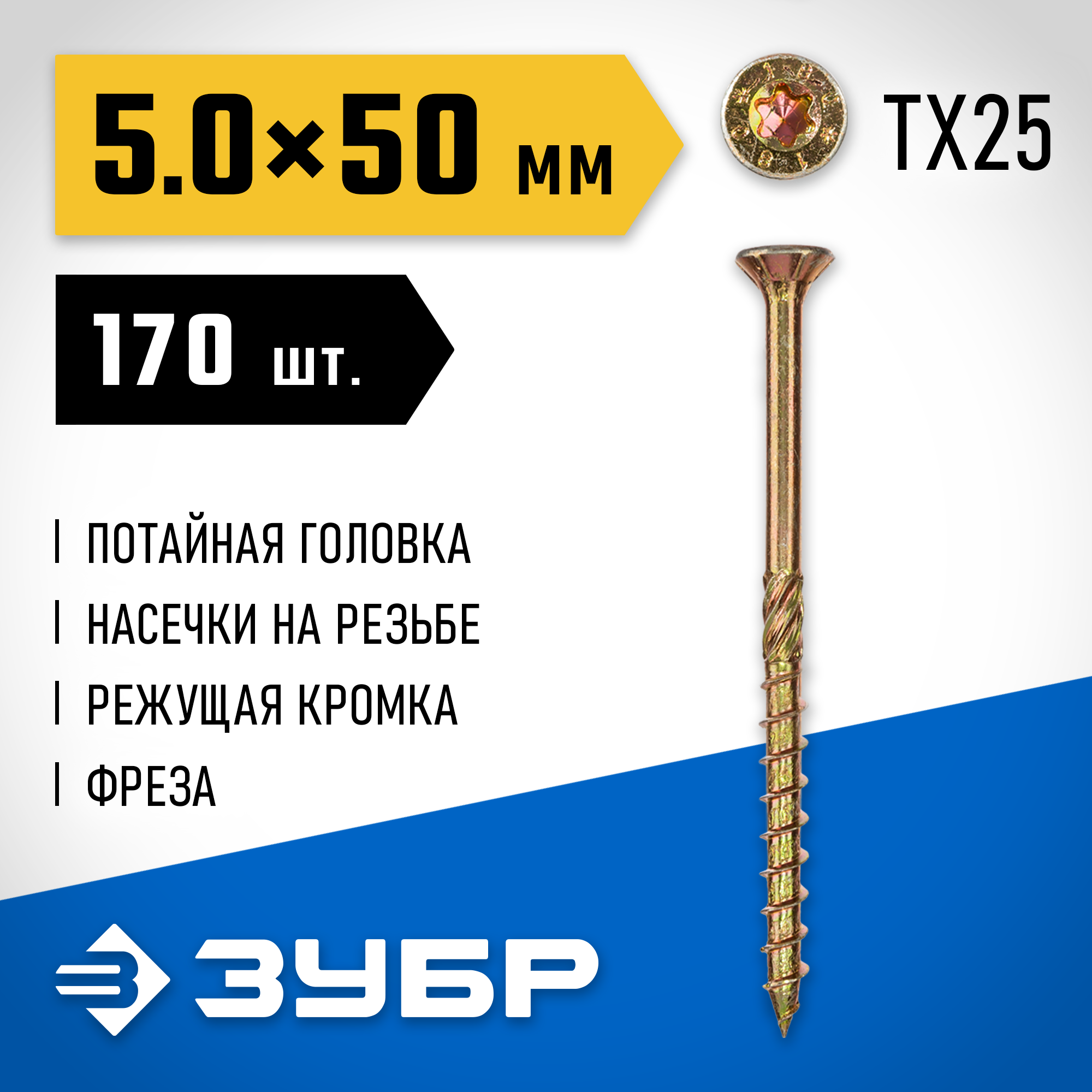 ЗУБР 50 х 5.0 мм, 170 шт., желтый цинк, КС-П конструкционные саморезы 30041-50-050