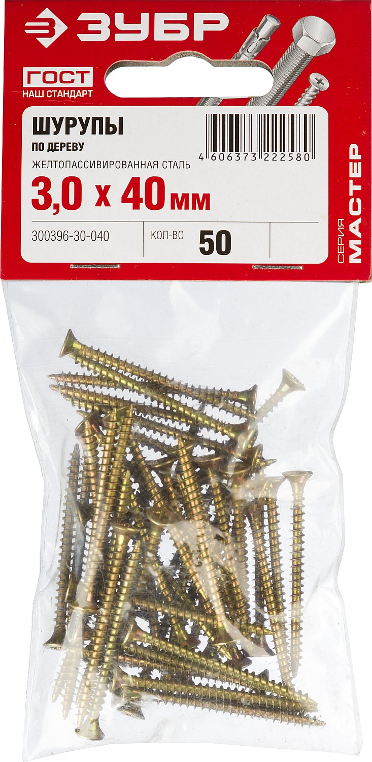 ЗУБР 40 х 3.0 мм, 50 шт., желтый цинк, СУ-Ж саморезы универсальные по дереву 300396-30-040 Мастер