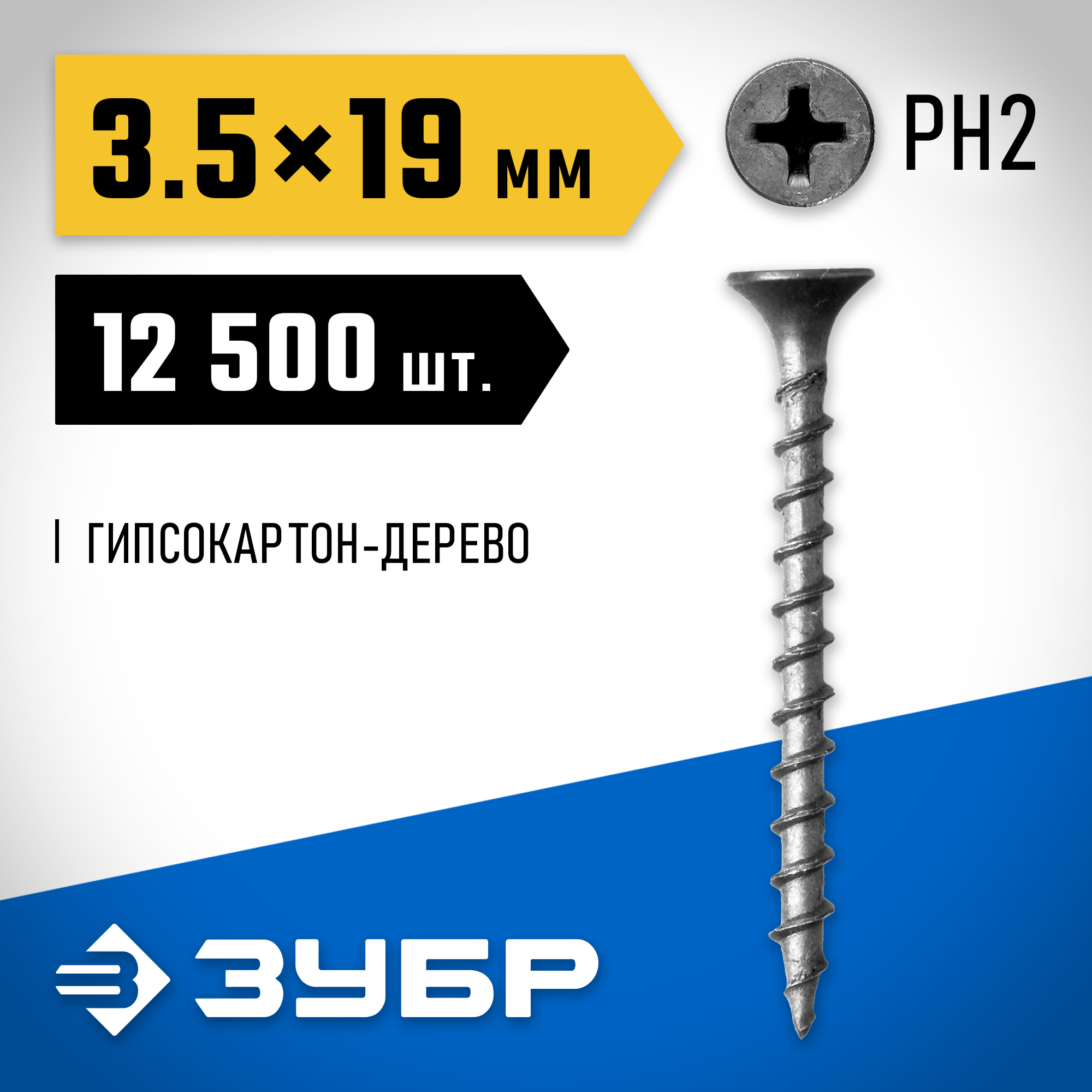 ЗУБР 19 х 3.5 мм, 12500 шт., СГД саморезы гипсокартон-дерево 4-300030-35-020 Профессионал