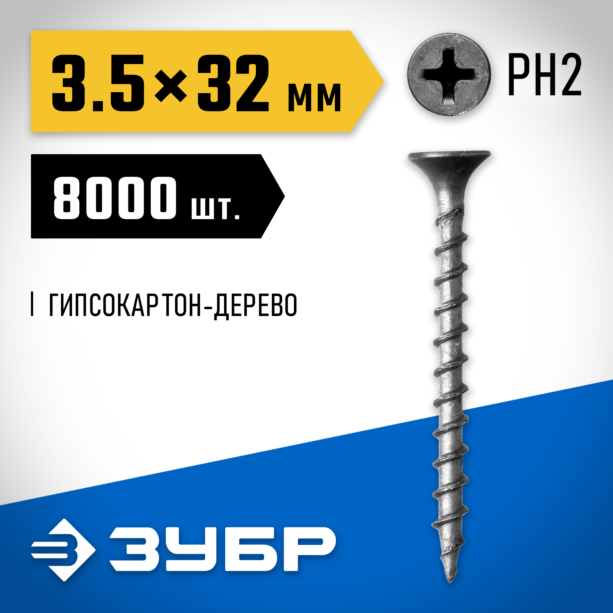 ЗУБР 32 х 3.5 мм, 8000 шт., СГД саморезы гипсокартон-дерево 4-300030-35-030 Профессионал