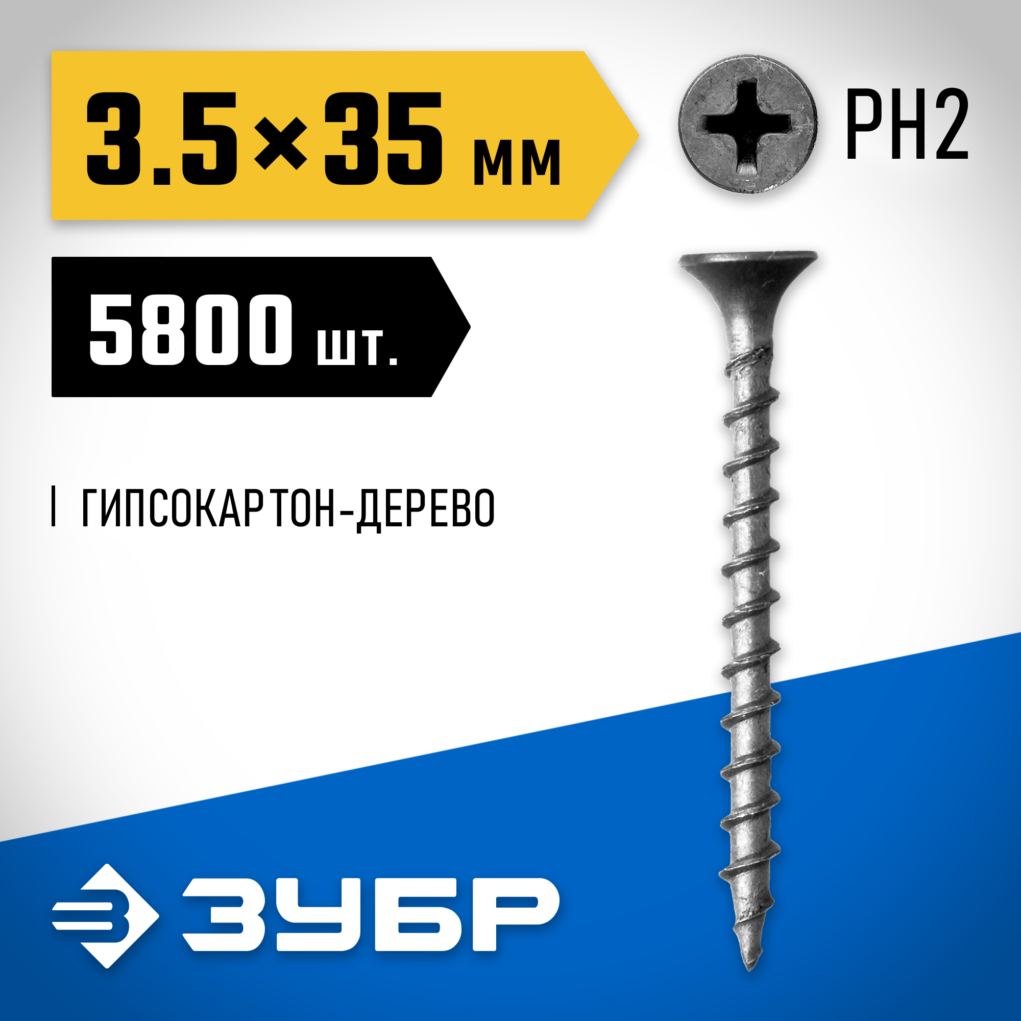 ЗУБР 35 х 3.5 мм, 5800 шт., СГД саморезы гипсокартон-дерево 4-300030-35-035 Профессионал