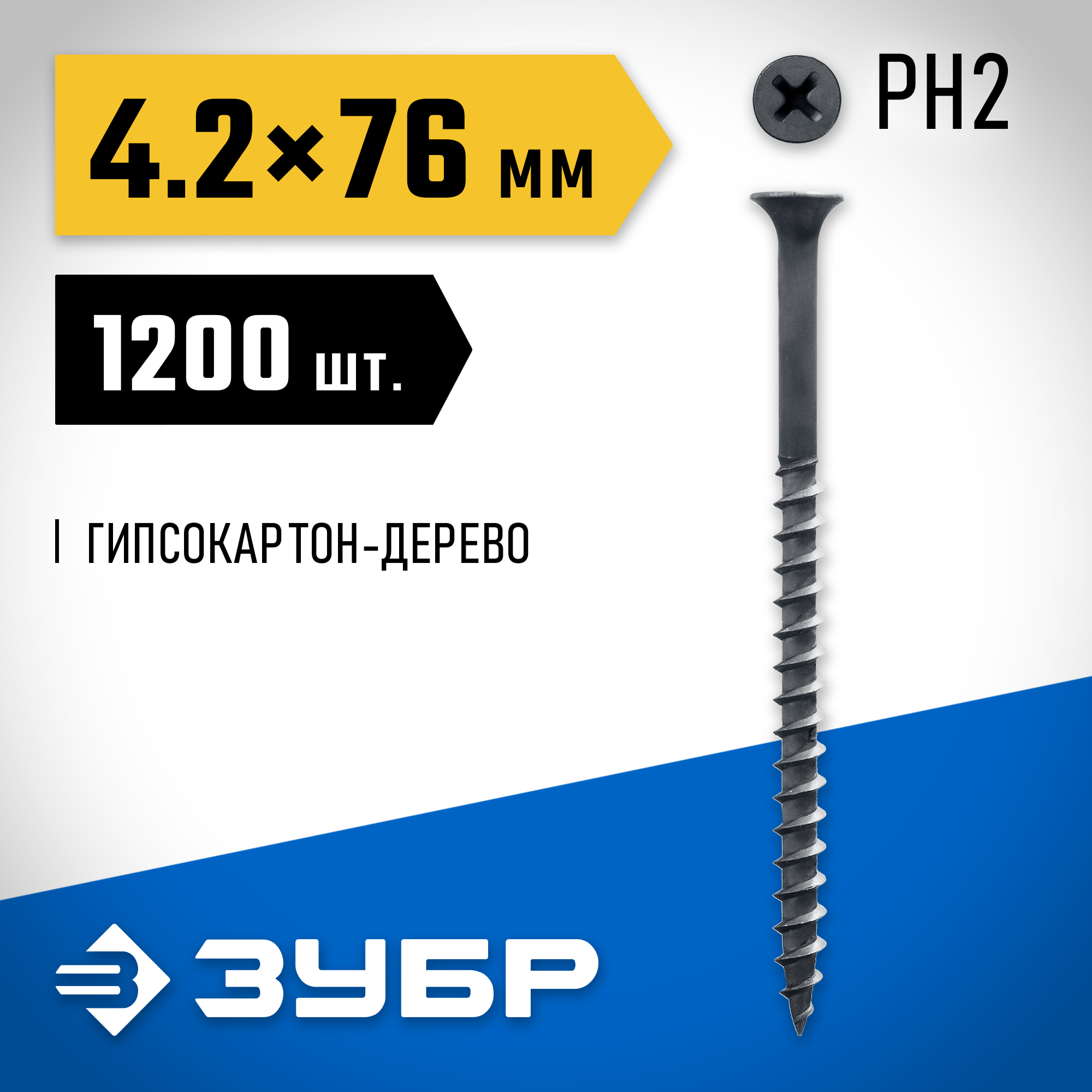 ЗУБР 76 х 4.2 мм, 1200 шт., СГД саморезы гипсокартон-дерево 4-300030-42-075 Профессионал