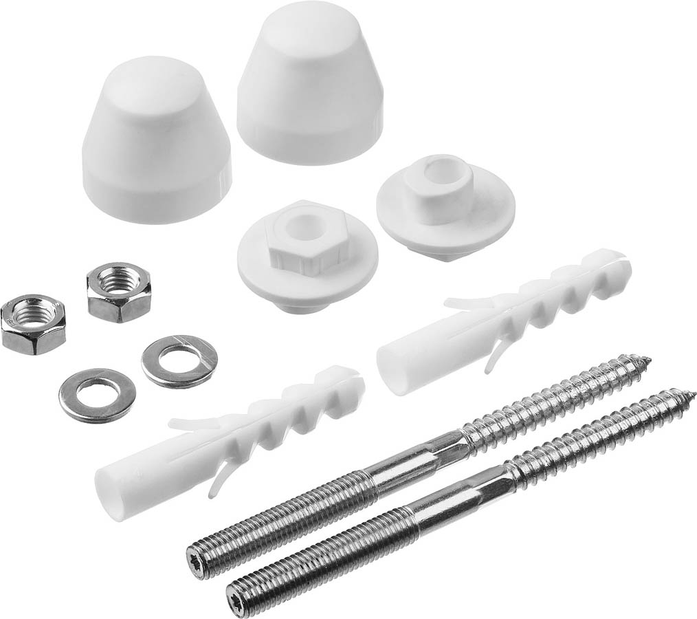 Набор ЗУБР 44220, применяется для крепления писсуаров к бетонному или кирпичному основанию. Диаметр предварительного сверления: 14 мм. Наборы для крепления сантехники предлагают широкий выбор готовых решений для простого и удобного крепления различных видов сантехники (раковин, унитазов, писсуаров). Набор включает в себя полный комплект крепежных изделий, необходимых для установки писсуара: дюбели, шурупы, декоративные колпачки и втулки пластмассовые. Декоративные колпачки белого цвета фиксируются на установленных шурупах и способствуют улучшению общего эстетического вида.