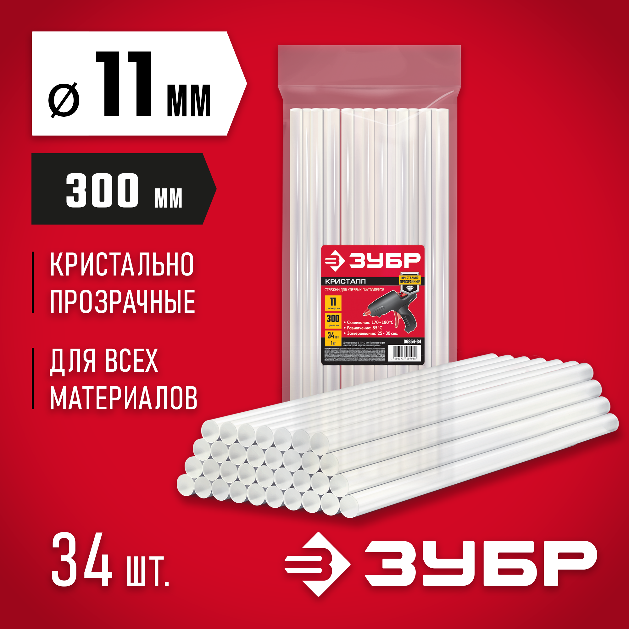 ЗУБР 34 шт., 1 кг, 11 мм х 300 мм (11-12 мм), прозрачные, универсальные клеевые стержни 06854-34 Профессионал