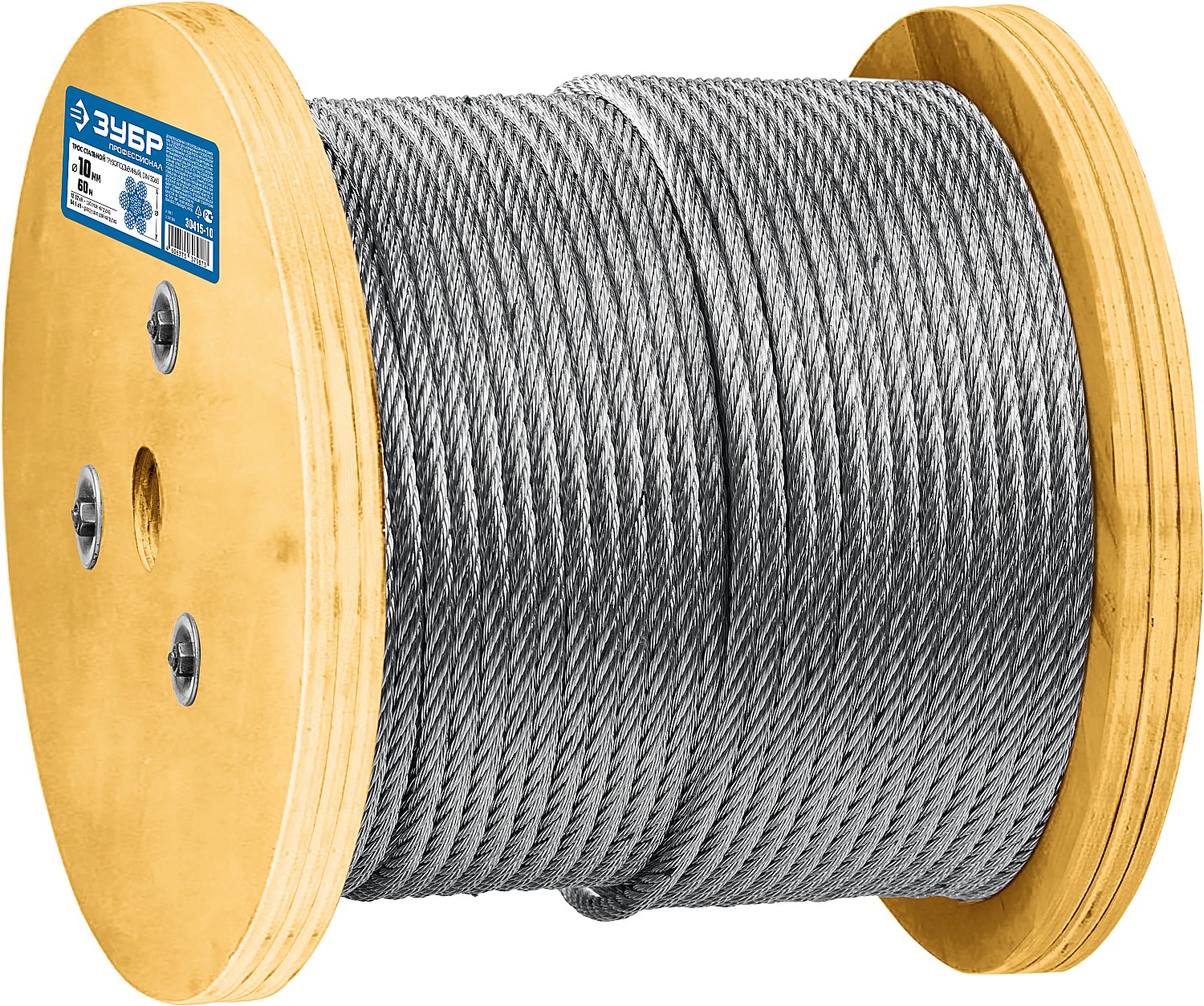 ЗУБР d=10 мм, L=60 м, DIN 3060, трос грузоподъемный стальной, оцинкованный 30415-10 Профессионал