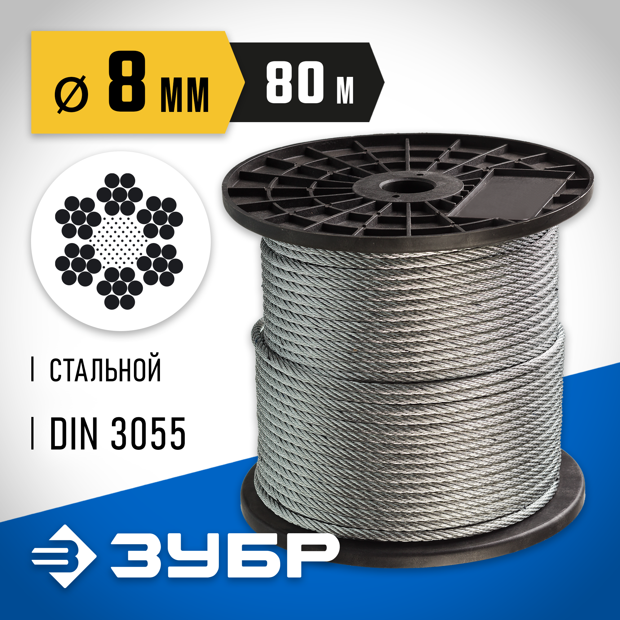 ЗУБР d=8 мм, 80 м, трос стальной, DIN 3055 4-304110-08 Профессионал