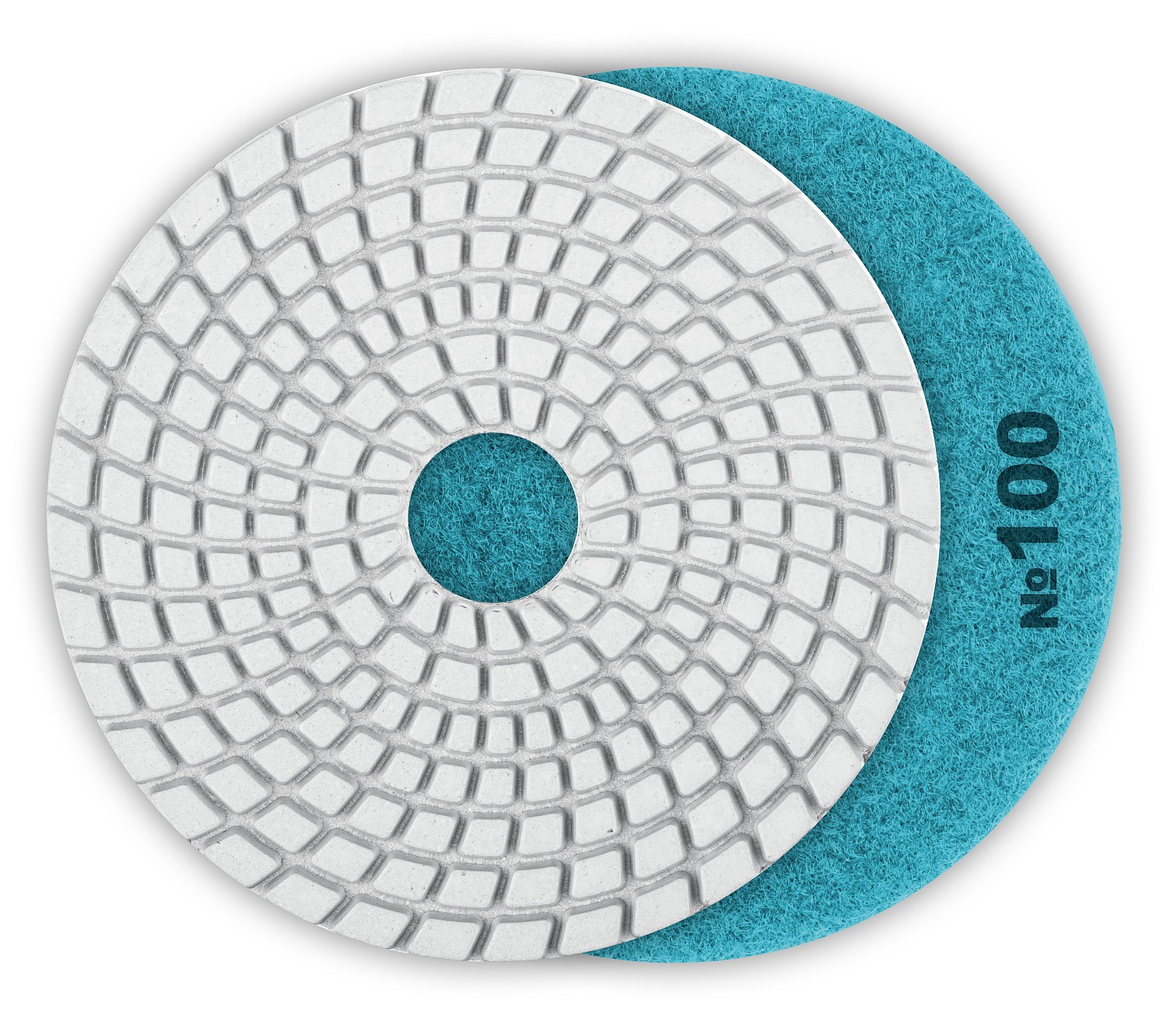 Алмазный гибкий шлифовальный круг (Черепашка) для мокрого шлифования ЗУБР 29866-100, предназначен для шлифовки и полировки изделий из натурального и искуственного камня, керамогранита, гранита, мрамора с применением водяного охлаждения. Используется на ручном электроинструменте (УШМ, полировальные машины, дрели) с насадкой адаптером под липучку Velcro. Высокий ресурс и производительность благодаря оптимальному соотношению связки и фракции алмаза. Гибкая основа позволяет обрабатывать не только ровные плоскости, но и поверхности с плавными линиями изгибов. Система крепления Velcro (липучка) обеспечивает быструю замену круга. Широкая сфера применения: обработка каменных столешниц, подоконников, ступеней, скульптур, декоративной плитки, снятие фасок, заусовка, полировка сколов, различные реставрационные работы.