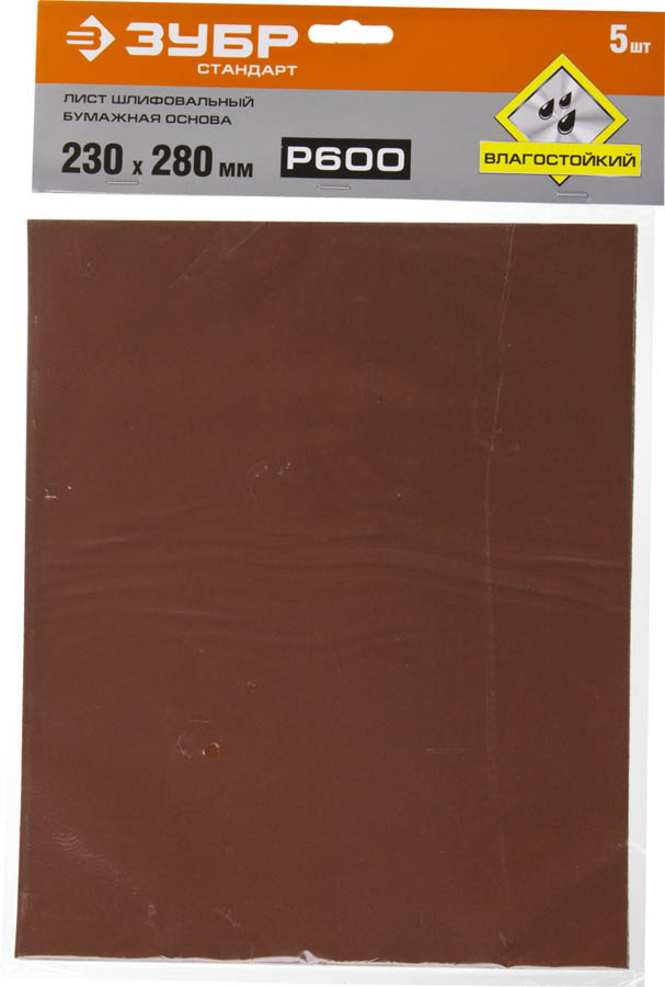 ЗУБР 230 х 280 мм, Р600, 5 шт., на бумажной основе, водостойкий, лист шлифовальный 35417-600 Стандарт