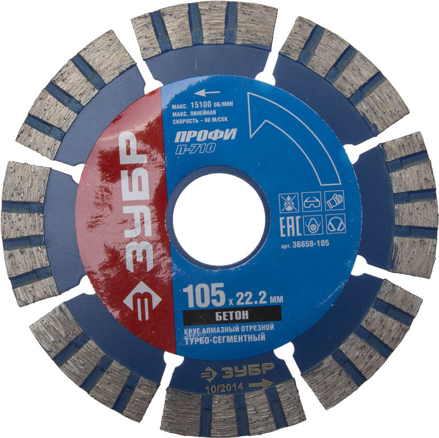 ЗУБР Ø 105Х22.2 мм, алмазный, сегментный, диск отрезной Т-710 БЕТОН 36658-105 Профессионал