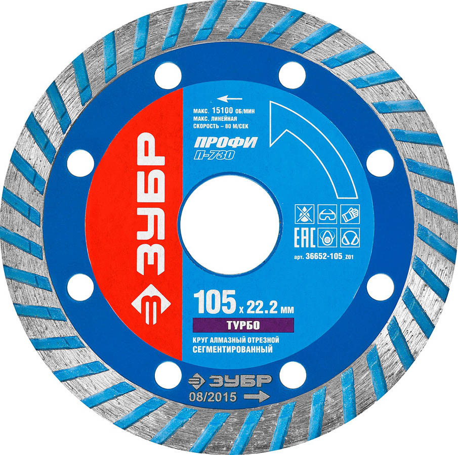 ЗУБР Ø 105х22.2 мм, алмазный, сегментный, круг отрезной для УШМ 36652-105_z01 Профессионал