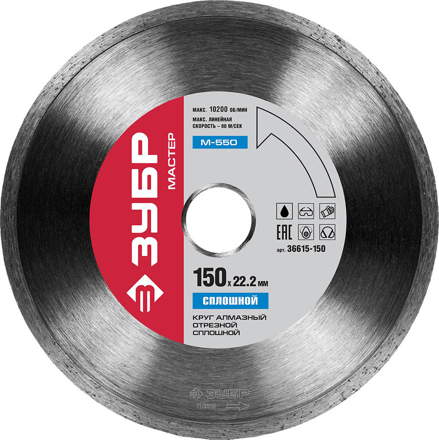 ЗУБР Ø 150х22.2 мм, алмазный, сплошной, круг отрезной для УШМ 36615-150 Мастер
