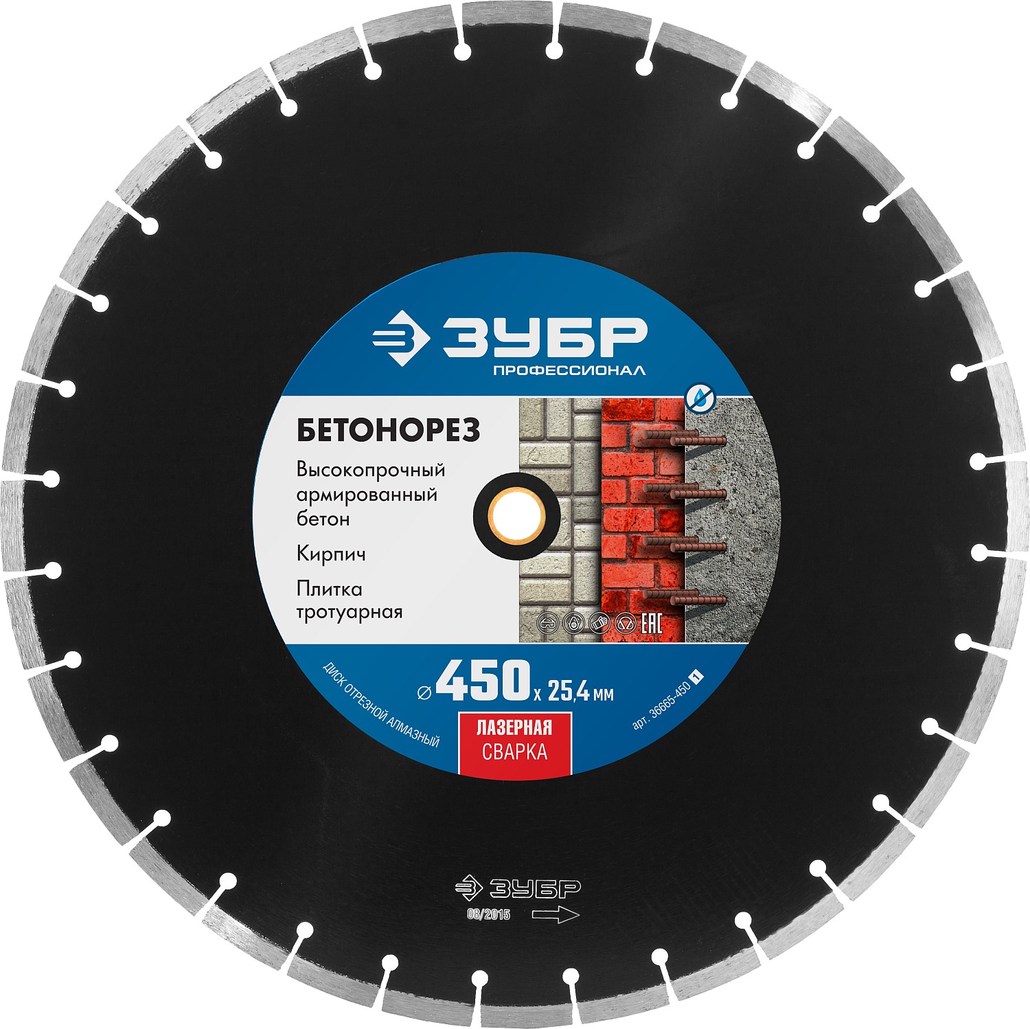 ЗУБР Ø 450х25.4 мм, алмазный, сегментный, диск отрезной для швонарезчиков и бензорезов БЕТОНОРЕЗ 36665-450_z01 Профессионал