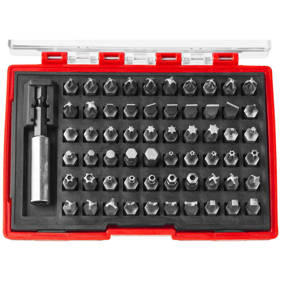 Набор бит ЗУБР 26089-H61, применяется при монтаже и демонтаже резьбовых соединений. Высококачественная легированная хромомолибденовая сталь обеспечивает высокую механическую прочность. Точная геометрия шлицов обеспечивает точную посадку в крепеже. Адаптер с магнитным держателем обеспечивает быструю и надежную фиксацию насадки. Эргономичный пластиковый кейс для удобного хранения и переноски.