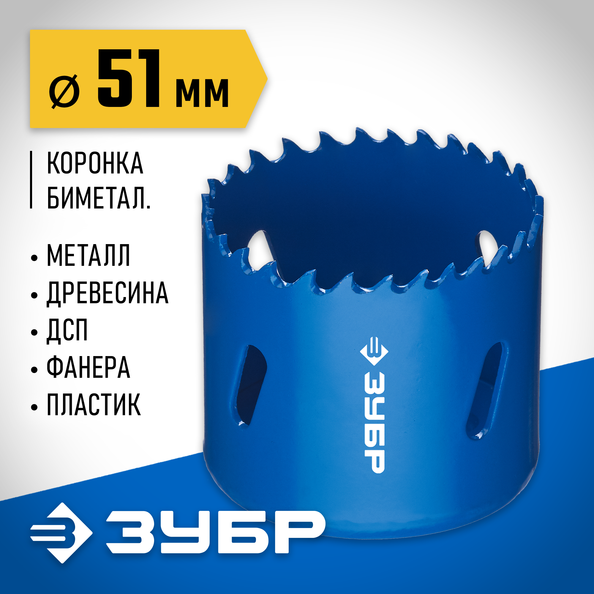 ЗУБР d 51 мм, глубина сверления до 38 мм, коронка биметаллическая 29531-051_z01