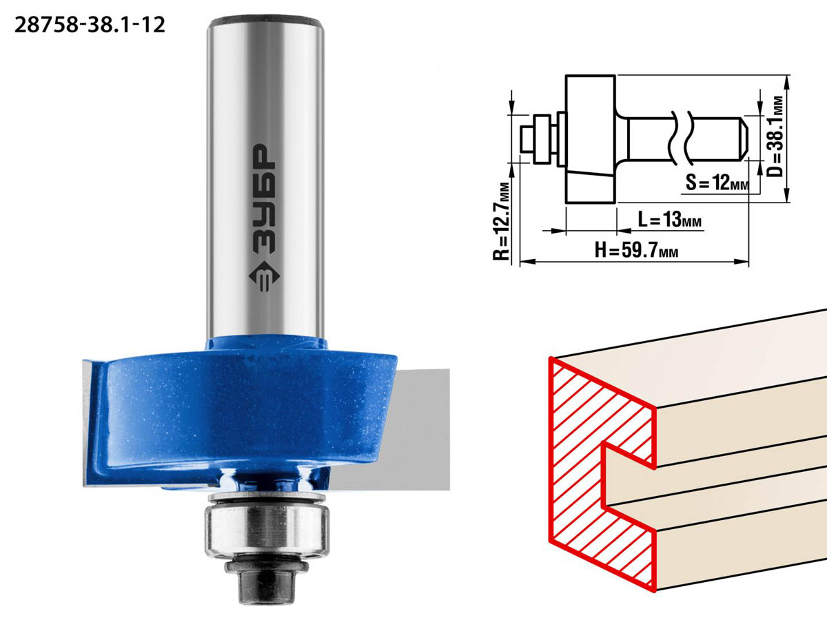 ЗУБР 38.1 x 13 мм, хвостовик 12 мм, фреза фальцевая 28758-38.1-12 Профессионал