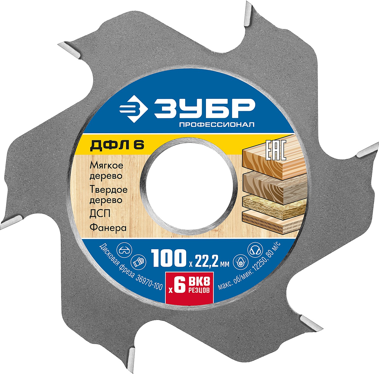 ЗУБР 100 х 22.2 мм, 6 резцов, фреза пазовая дисковая для ламельного фрезера ДФЛ 6 36970-100 Профессионал