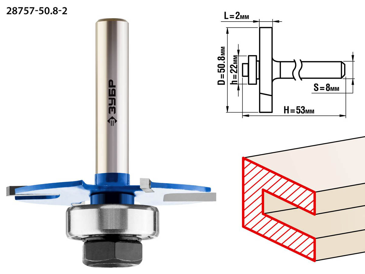 ЗУБР 50.8 x 2 мм, хвостовик 8 мм, фреза горизонтально-пазовая 28757-50.8-2 Профессионал