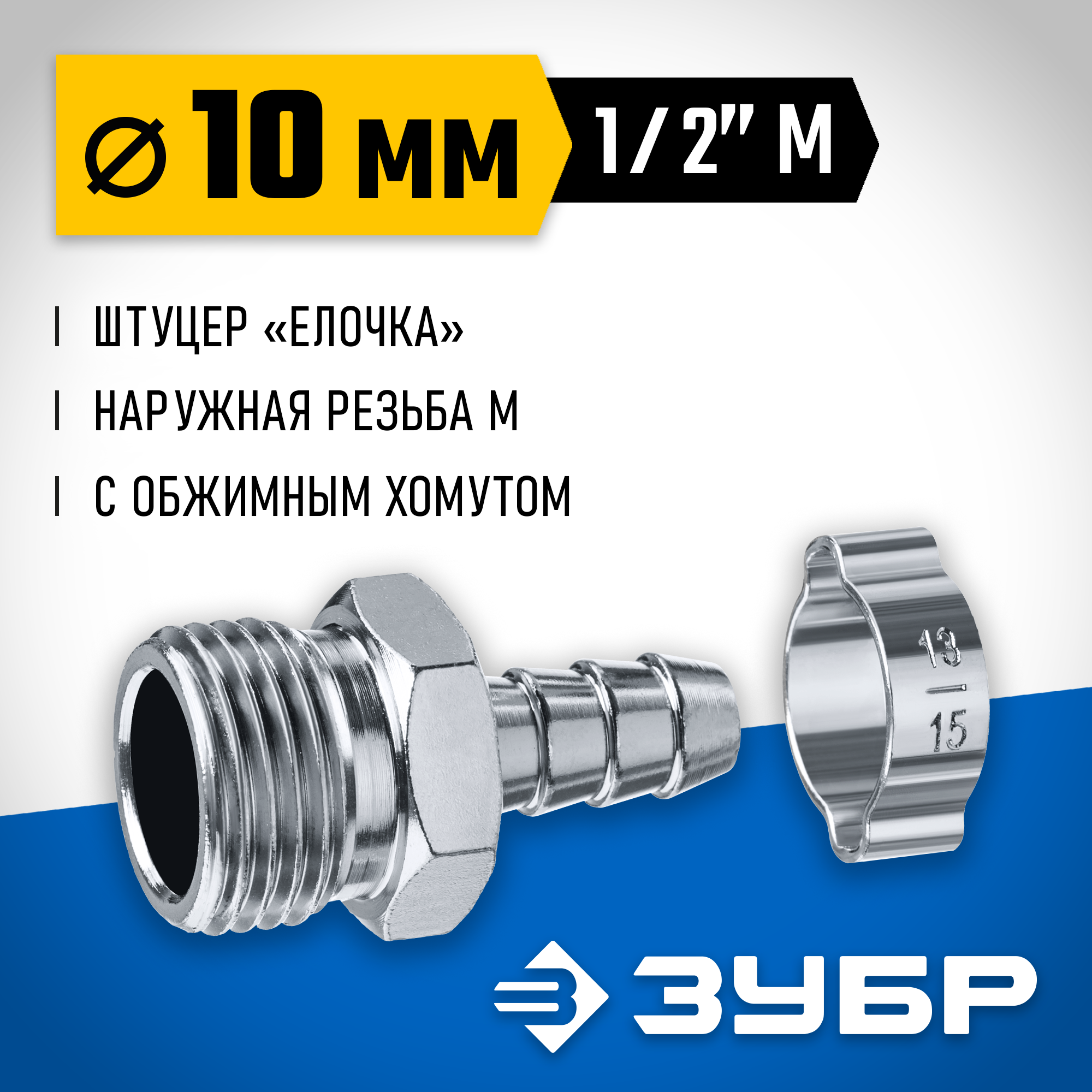 ЗУБР 10 мм, штуцер 1/2''M, с хомутом, переходник для пневмоинструмента 64924-1/2-10 Профессионал