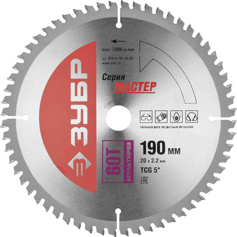 ЗУБР Ø 190 х 20 мм, 60T, диск пильный по алюминию 36916-190-20-60