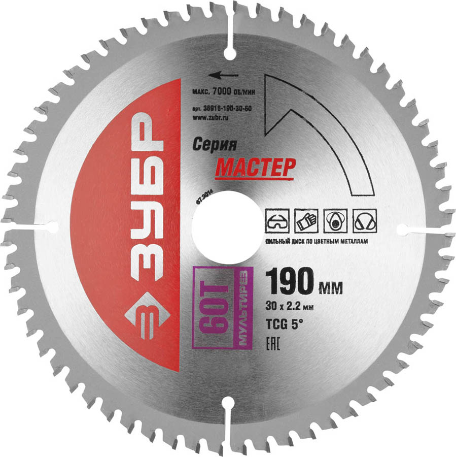 ЗУБР Ø 190 х 30 мм, 60T, диск пильный по алюминию 36916-190-30-60