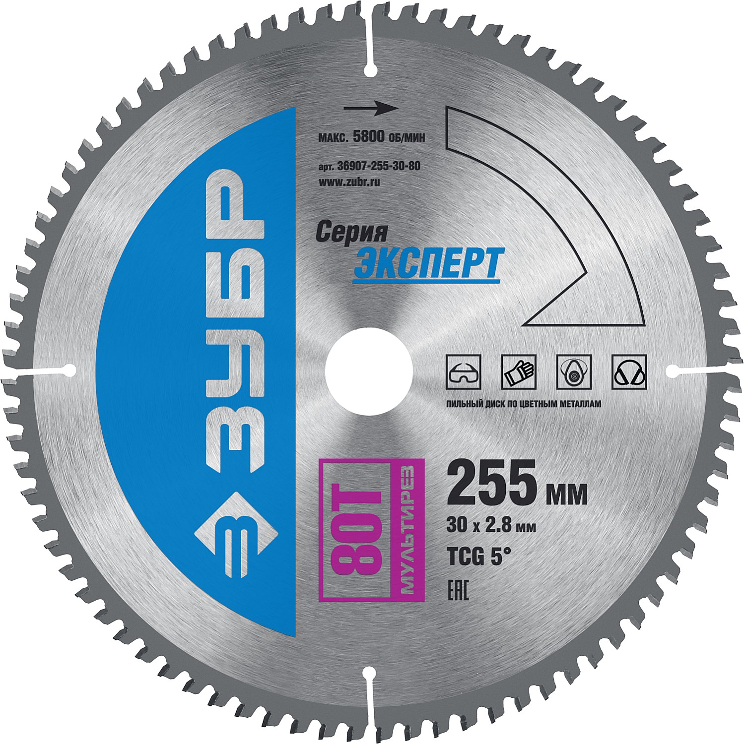 ЗУБР Ø 255 х Ø 30 мм, 80T, диск пильный по алюминию, ламинату 36907-255-30-80