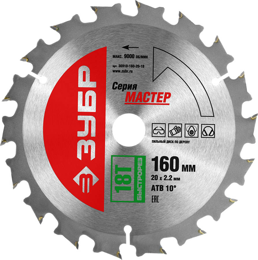 ЗУБР Ø 160 x 20 мм, 18T, диск пильный по дереву ''Быстрый рез'' 36910-160-20-18