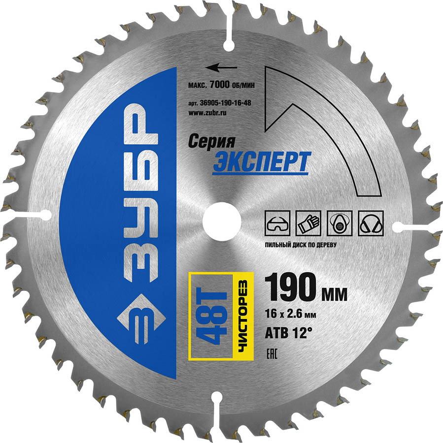ЗУБР Ø 190 х 16 мм, 48Т, диск пильный по дереву 36905-190-16-48