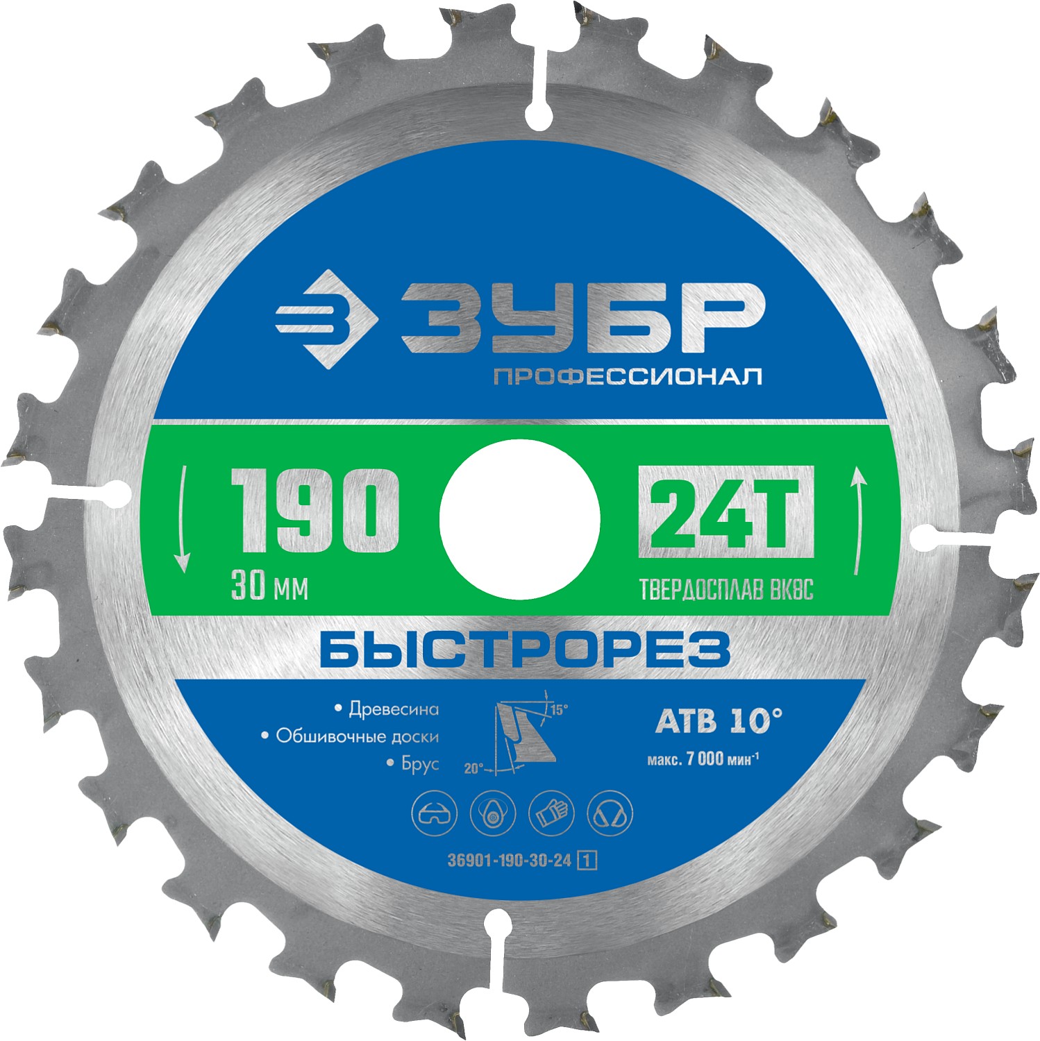 ЗУБР 190 x 30 мм, 24Т, диск пильный по дереву Быстрорез 36901-190-30-24_z01