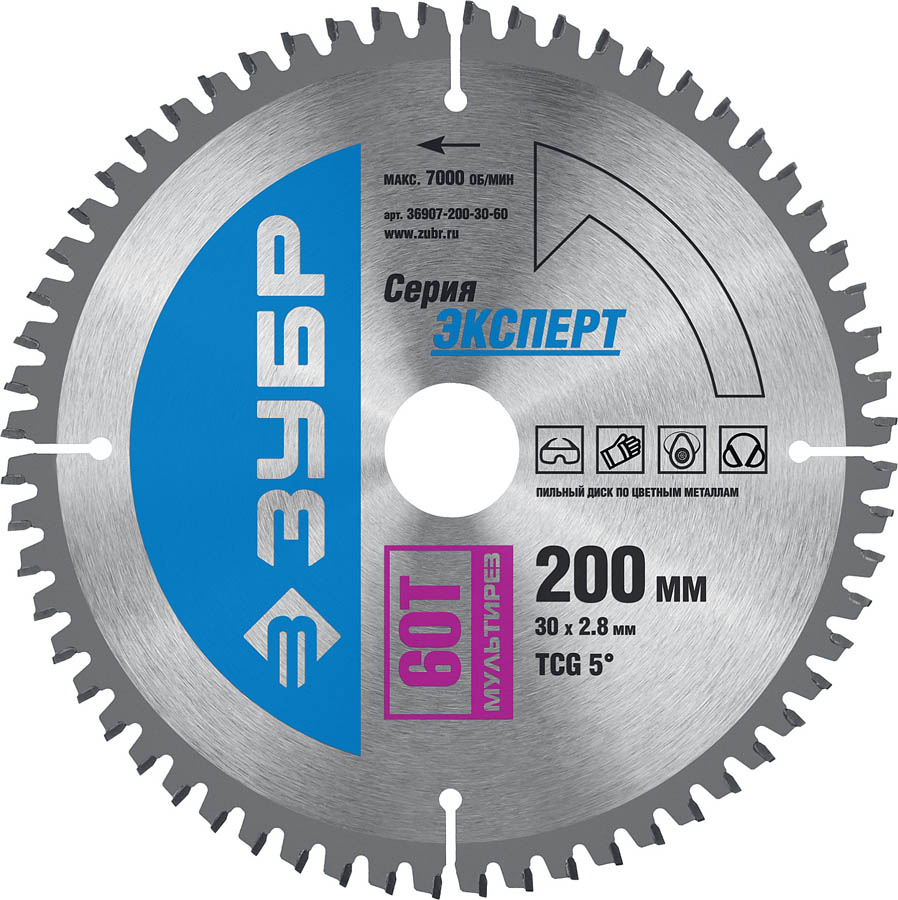ЗУБР Ø 200 х Ø 30 мм, 60T, диск пильный по алюминию, ламинату 36907-200-30-60