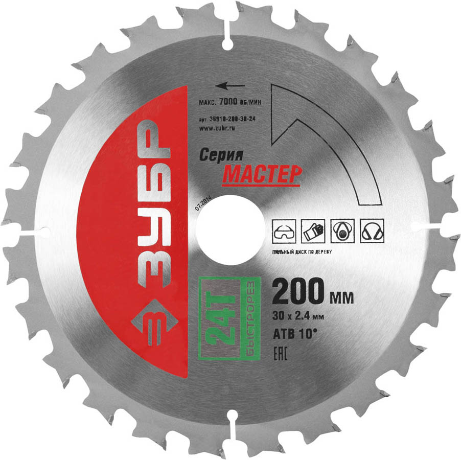 ЗУБР Ø 200 x 30 мм, 24T, диск пильный по дереву ''Быстрый рез'' 36910-200-30-24