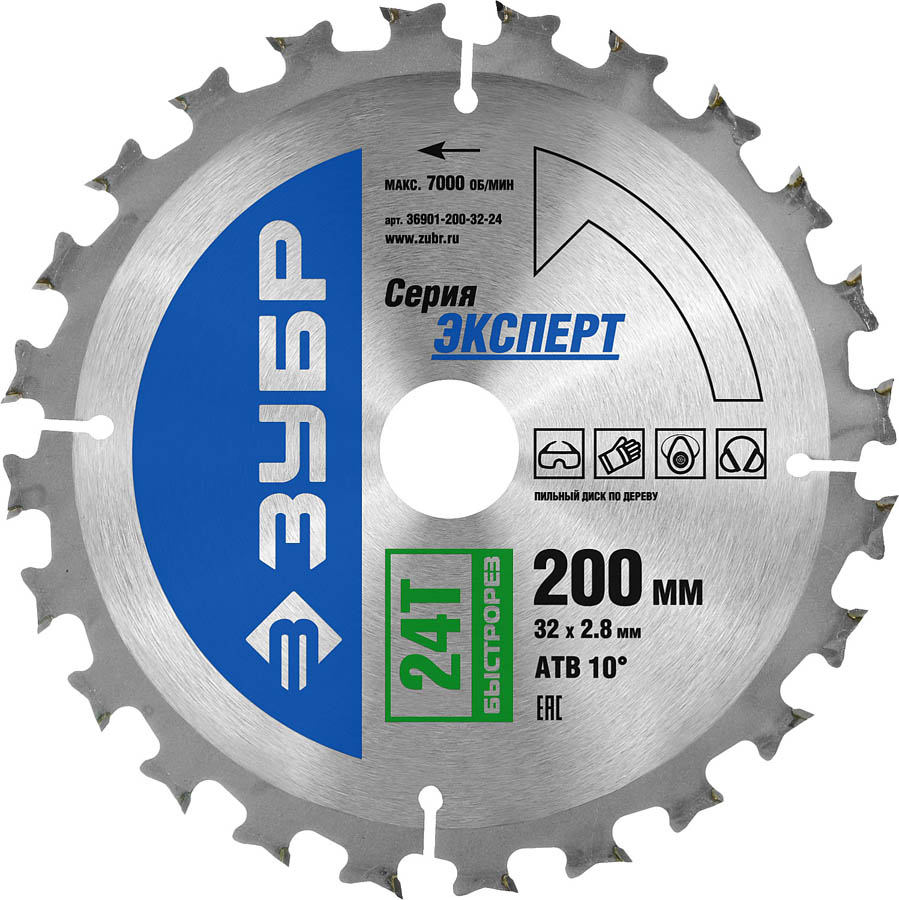 ЗУБР Ø 200 x 32 мм, 24T, диск пильный по дереву ''Быстрый рез'' 36901-200-32-24