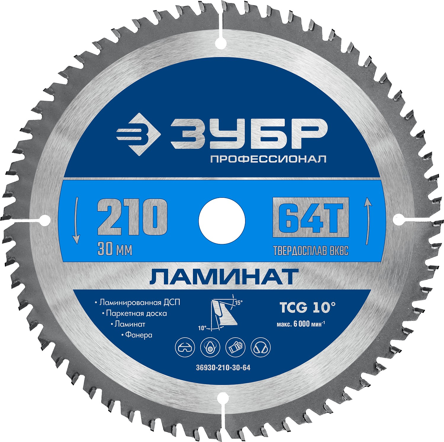 Диск пильный по ламинату ЗУБР 36930-210-30-64, предназначен для аккуратного реза по ламинату, МДФ, фанере, ламинированному ДСП, паркетной доске.