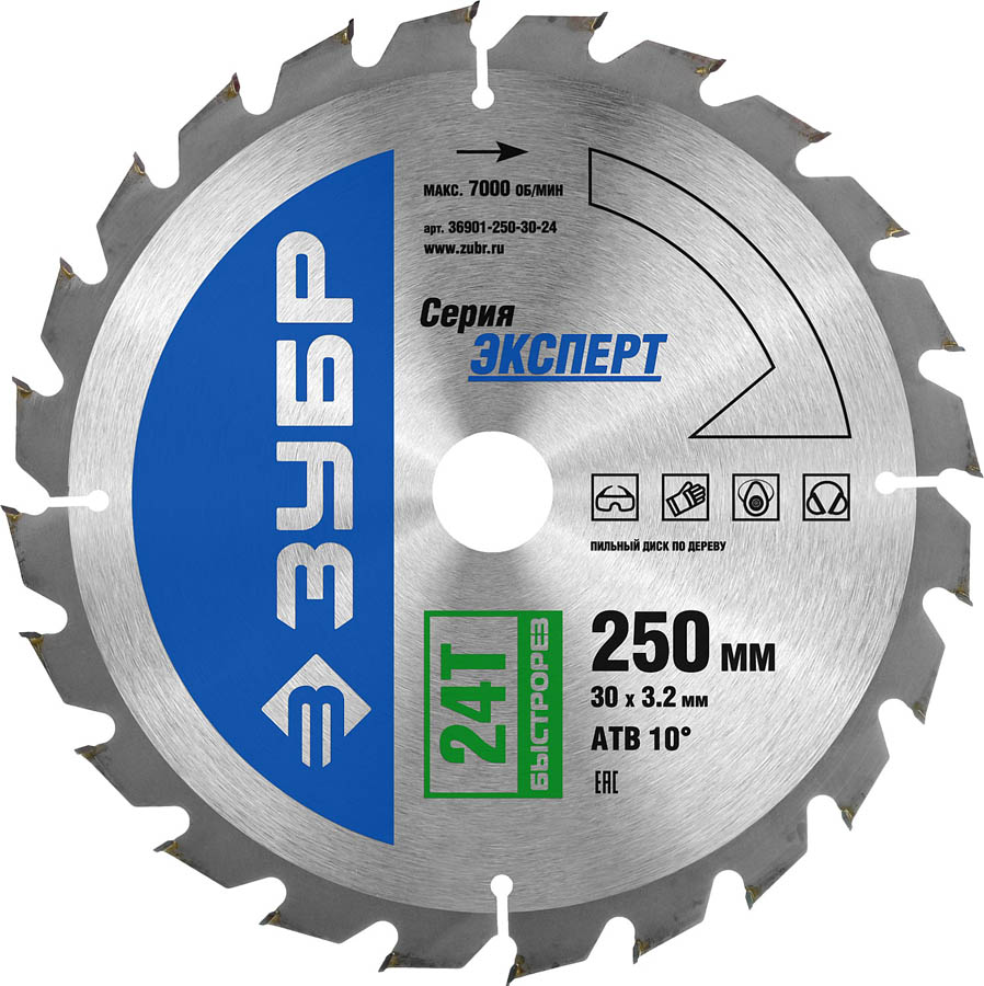ЗУБР Ø 250 x 30 мм, 24T, диск пильный по дереву ''Быстрый рез'' 36901-250-30-24