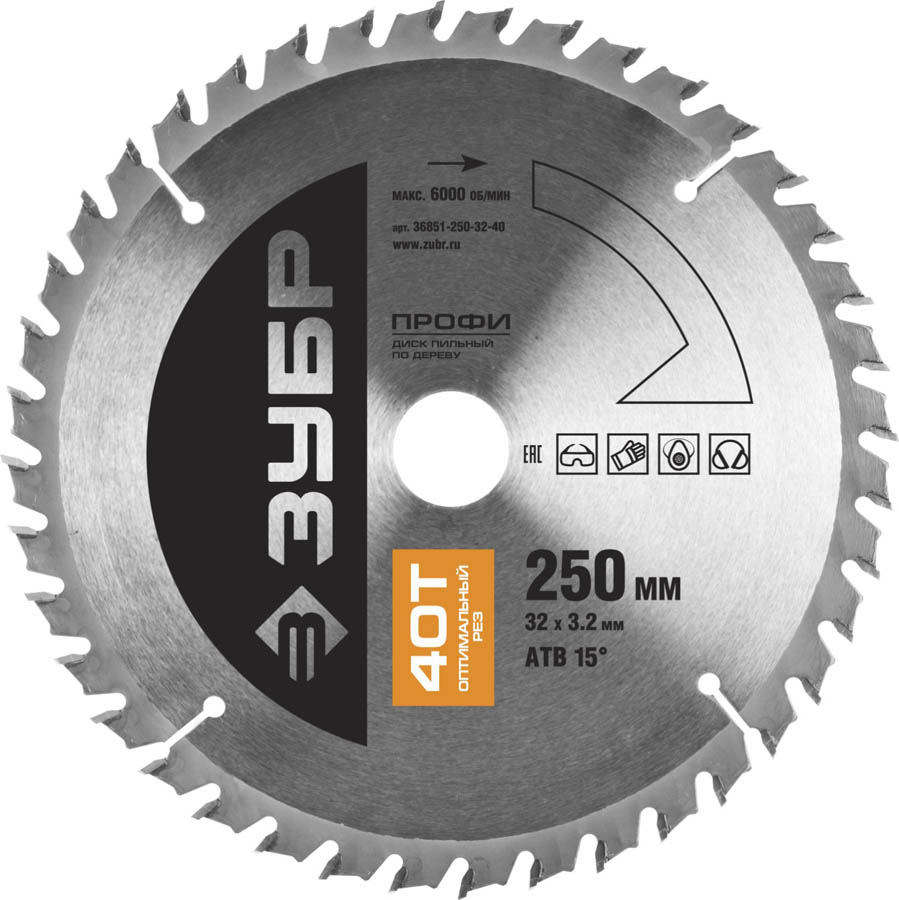 ЗУБР Ø 250 x 32 мм, 40T, диск пильный по дереву 36851-250-32-40 Профессионал