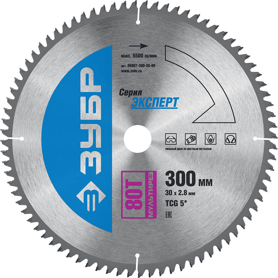 ЗУБР Ø 300 х Ø 30 мм, 80T, диск пильный по алюминию, ламинату 36907-300-30-80