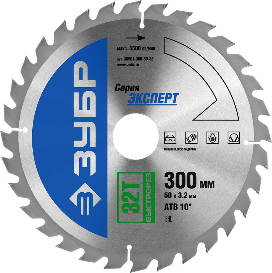 ЗУБР Ø 300 x 50 мм, 32T, диск пильный по дереву ''Быстрый рез'' 36901-300-50-32