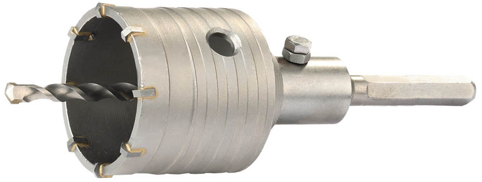 Коронка буровая в сборе ЗУБР 2917-65, предназначена для сверления отверстий в бетоне, кирпиче, природном и искусственном камне, а также в плотных известняках. Твердосплавные зубья из сплава ВК85. Буровая коронка с полной оснасткой. Шестигранный хвостовик. Спиралевидная резьба коронки для улучшенного пылеудаления продуктов сверления. При прокладке коммуникаций в строящемся здании не обойтись без коронок по бетону. Они позволяют без труда получать отверстия среднего или большого диаметра в самых прочных материалах. Коронки имеют твердосплавные зубья из сплава ВК85, усовершенствованную систему крепления сверла на конус и резьбовое соединение с державкой М22.