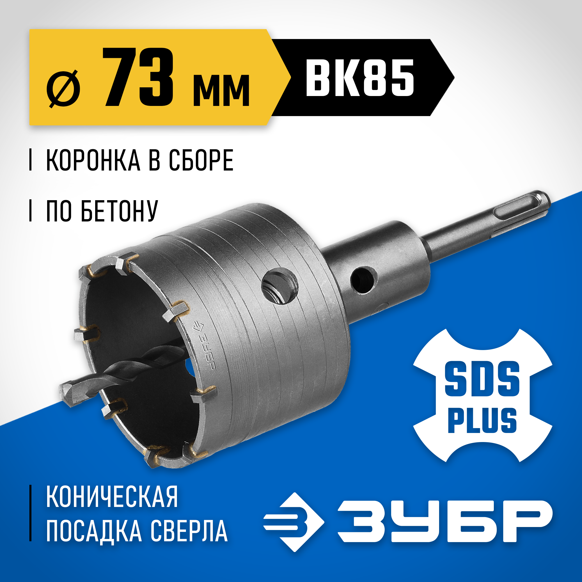 ЗУБР Ø 73 мм, 8 зубьев, коническая посадка центрирующего сверла, буровая коронка 2918-73_z01