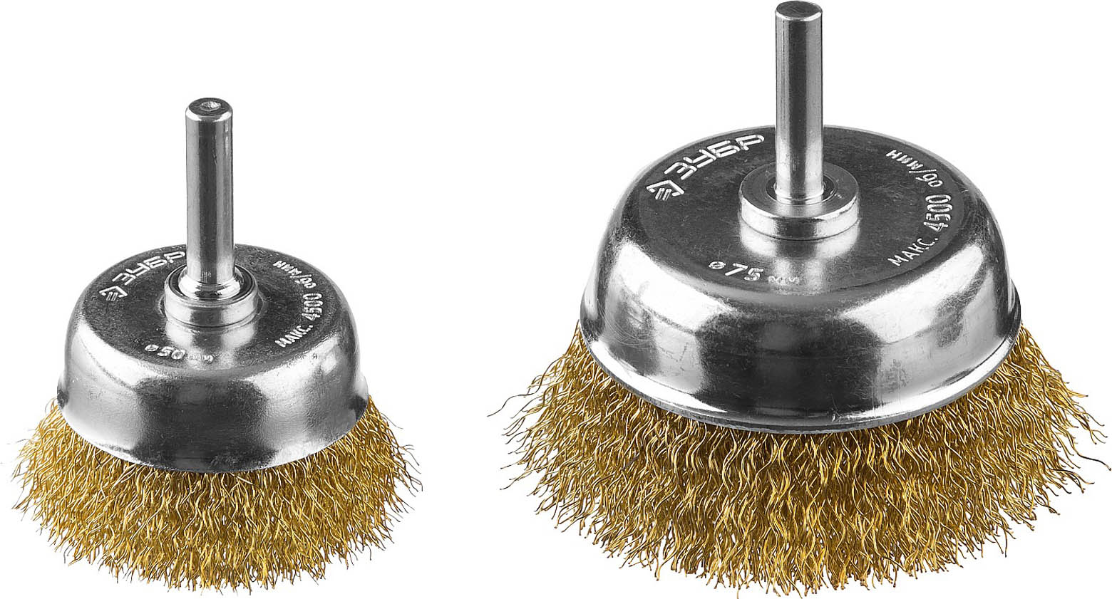 Набор щеток чашечных для дрели ЗУБР 3531-H2_z02, предназначен для удаления застарелых лакокрасочных покрытий, въевшейся грязи, ржавчины, окалины с поверхностей изделий из стали и цветных металлов. Витая стальная латунированная проволока. Латунированное покрытие защищает рабочую часть щетки от коррозии. Каждая щетка-крацовка ЗУБР проходит обязательный контроль качества. Все изготавливаемые щетки соответствуют действующим стандартам качества и обеспечивают безопасную работу в четко регламентированном диапазоне оборотов.
