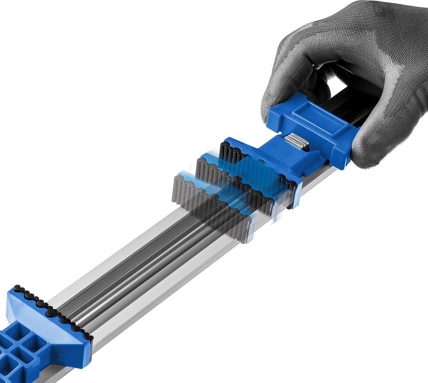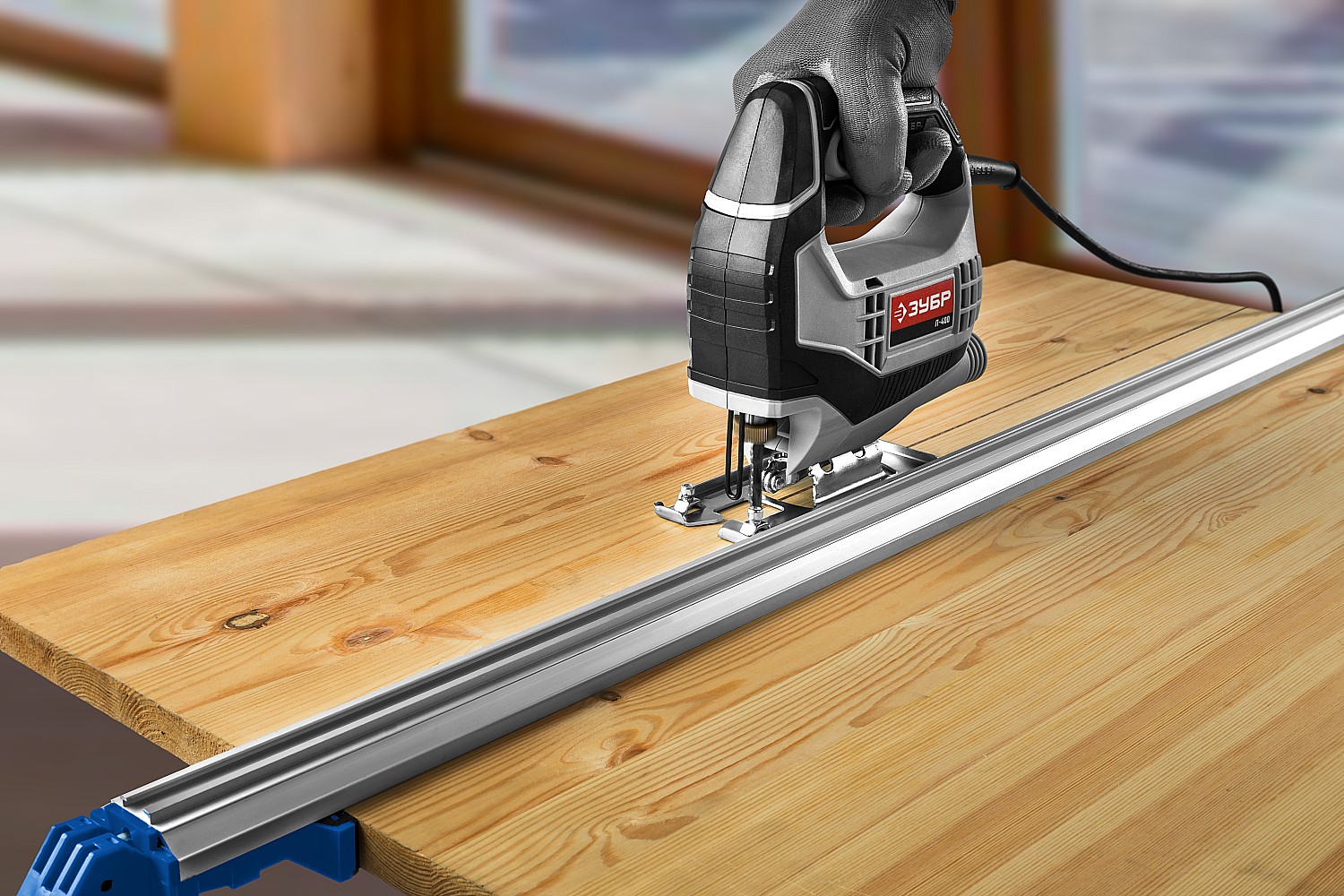 Универсальная направляющая шина ЗУБР 32232-2, используется в качестве направляющей для режущего инструмента. Сила зажима 120 кг. Губки из полиамида армированного фиберглассом.