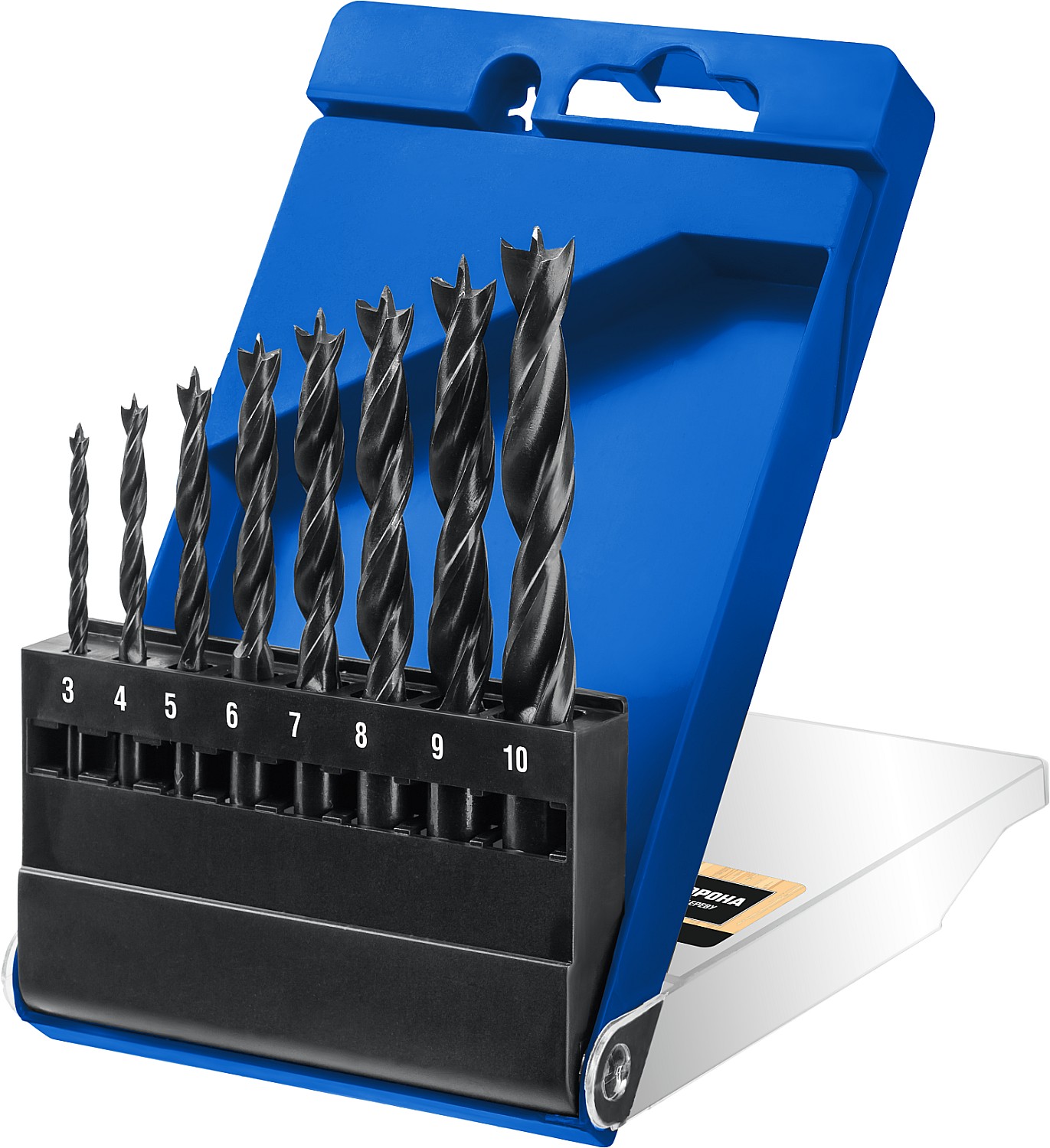 ЗУБР 8 шт., Ø 3-4-5-6-7-8-9-10 мм, М-образная заточка, набор спиральных сверл по дереву 29421-H8_z01 Профессионал