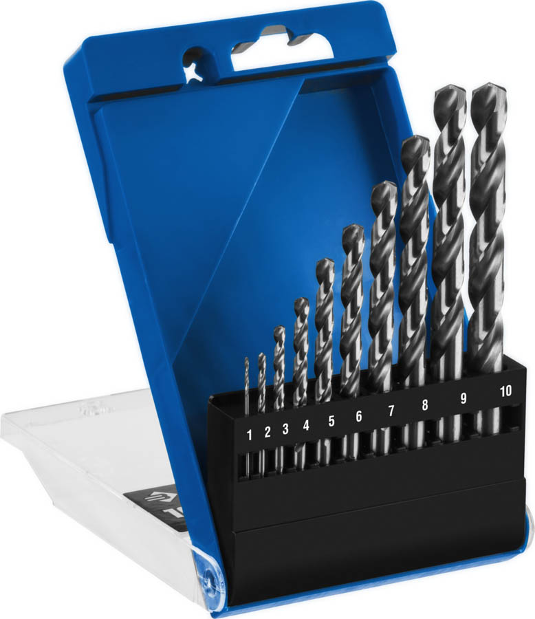 Набор сверел Зубр 29625-H10, предназначен для обработки легированных и углеродистых сталей с пределом прочности до 900Н/мм2, цветных металлов, серого чугуна и пластмассы. Качественное и точное сверло с большим ресурсом. Сверло изготовлено методом шлифования профиля по ГОСТ 10902-77 и соответствует классу точности сверления 'А1'. Крестообразная подточка позволяет начать сверлить без предварительного кернения. Угол заточки при вершине равный 135° повышает производительность работ.