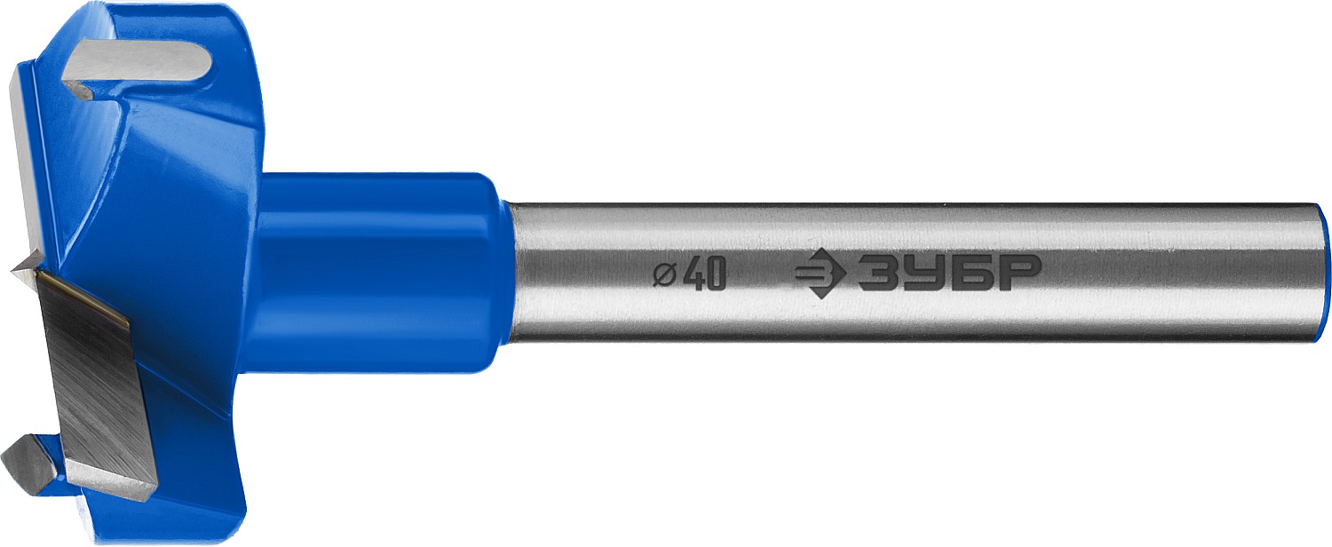Сверло Форстнера по дереву ЗУБР 29945-40_z01, применяется при установке мебельной фурнитуры, а также при сверлении глухих отверстий с точной геометрией и плоским дном.