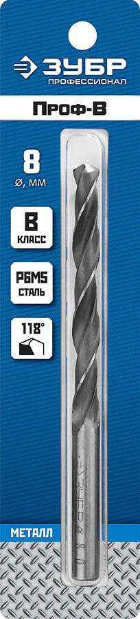ЗУБР Ø 8 x 117 мм, сталь Р6М5, класс В, сверло по металлу 29621-8 Профессионал