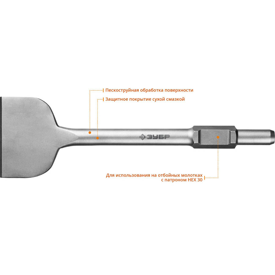 ЗУБР 125 х 400 мм, HEX 30 лопаточное зубило 29375-125-400 Профессионал