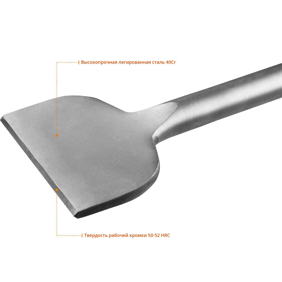 Зубило лопаточное ЗУБР 29375-125-400, предназначено для ремонта, реконструкции, долбежных и демонтажных работ по бетону, камню, кирпичу. Используются с отбойными молотками с креплением HEX 30. Преимущества: - Индукционная трехступенчатая закалка со строгим соблюдением температур в каждой зоне при термообработке для повышения стойкости и увеличения рабочего ресурса инструмента. - Высокопрочная легированная сталь гарантирует продолжительный срок службы инструмента. - Высокая устойчивость к ударам и динамическим нагрузкам. - Шлифованная круглая форма зубил. - Износостойкое покрытие защищает от коррозии.